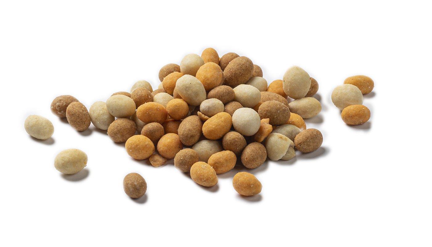Pinda’s in een krokant laagje van paprika, knoflook en saté.
